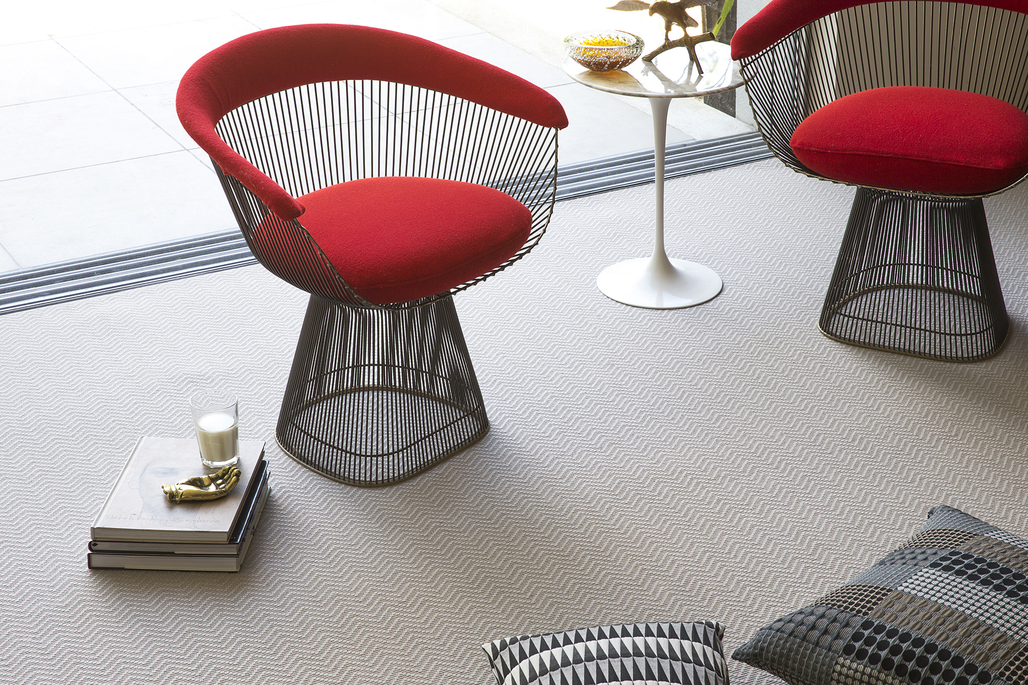 Carpets can be finished with different textures – loop pile or twist (also known as a cut pile carpet, where the carpet fibres are exposed where the yarns have been sheared). The tighter the twist the more durable the carpet. The latter style remains very popular as a general all-rounder feeling softer underfoot than loop pile carpets. Loop pile carpets have not been sheared but remain as a loop which gives a very different look and feel. Good quality loop or cut pile carpets will both perform just as well as each other, leaving the final decision down to personal preference. Natural carpets, such as Sisal and Seagrass, are popular with designers as they can make a bold, smart and contemporary statement using renewable materials. Carpets can also be made into bespoke rugs and a few specialist companies that we work closely with offer many exciting possibilities with colourful ranges of plain or patterned borders and piping options – all bespoke to you.